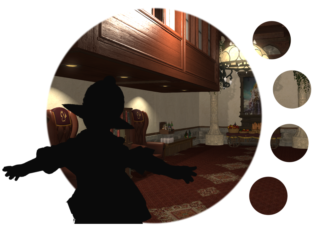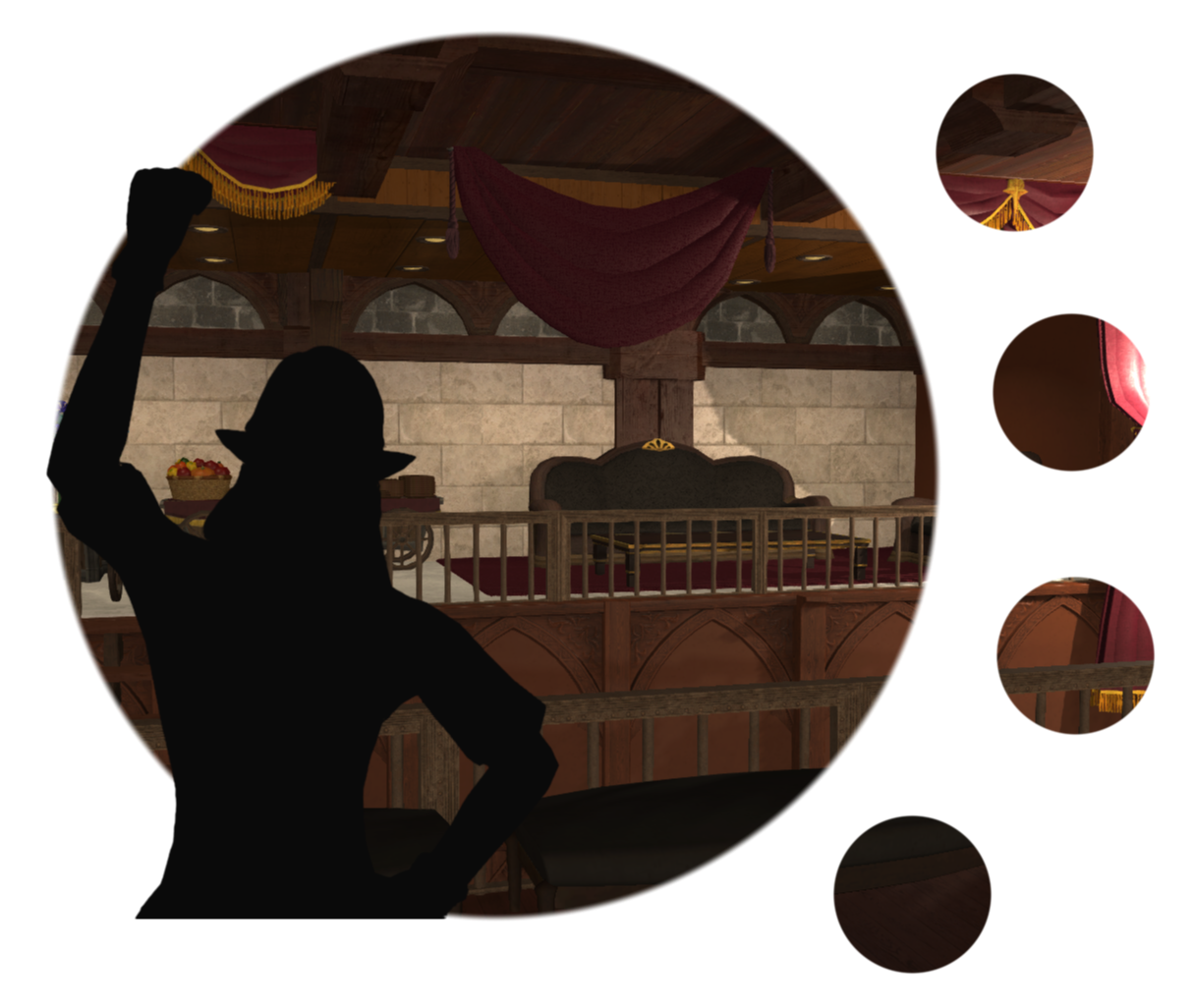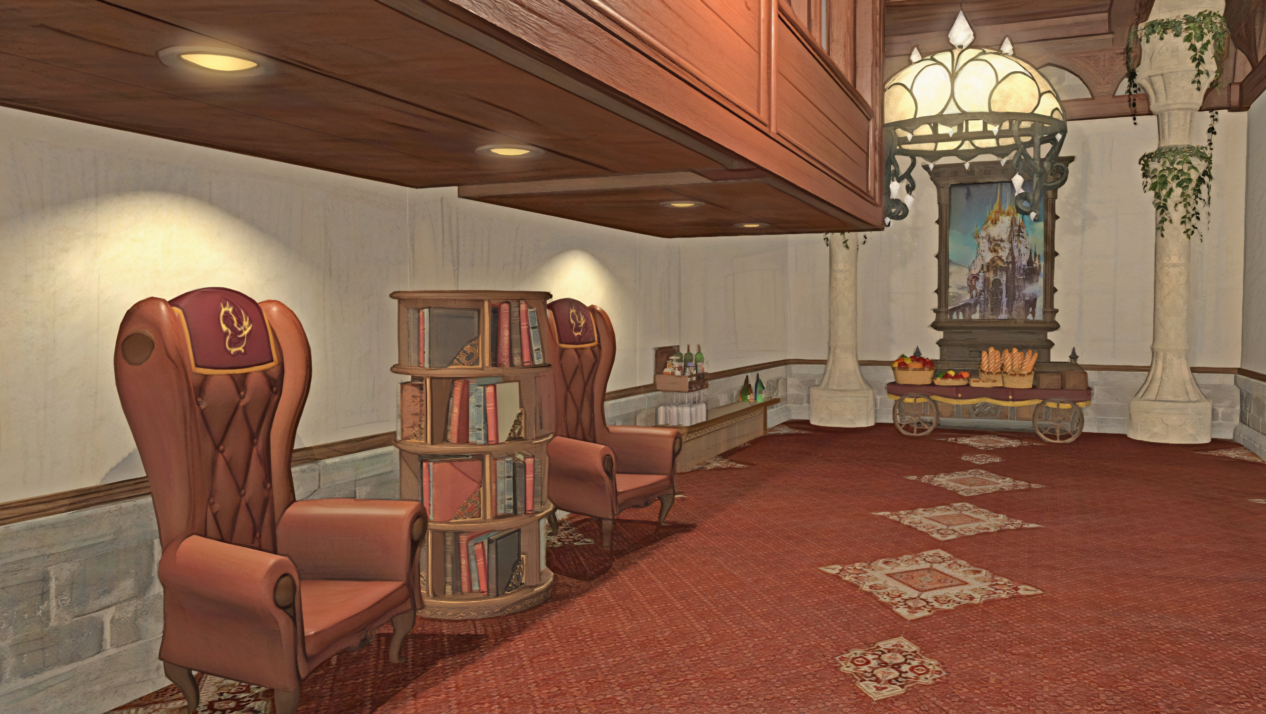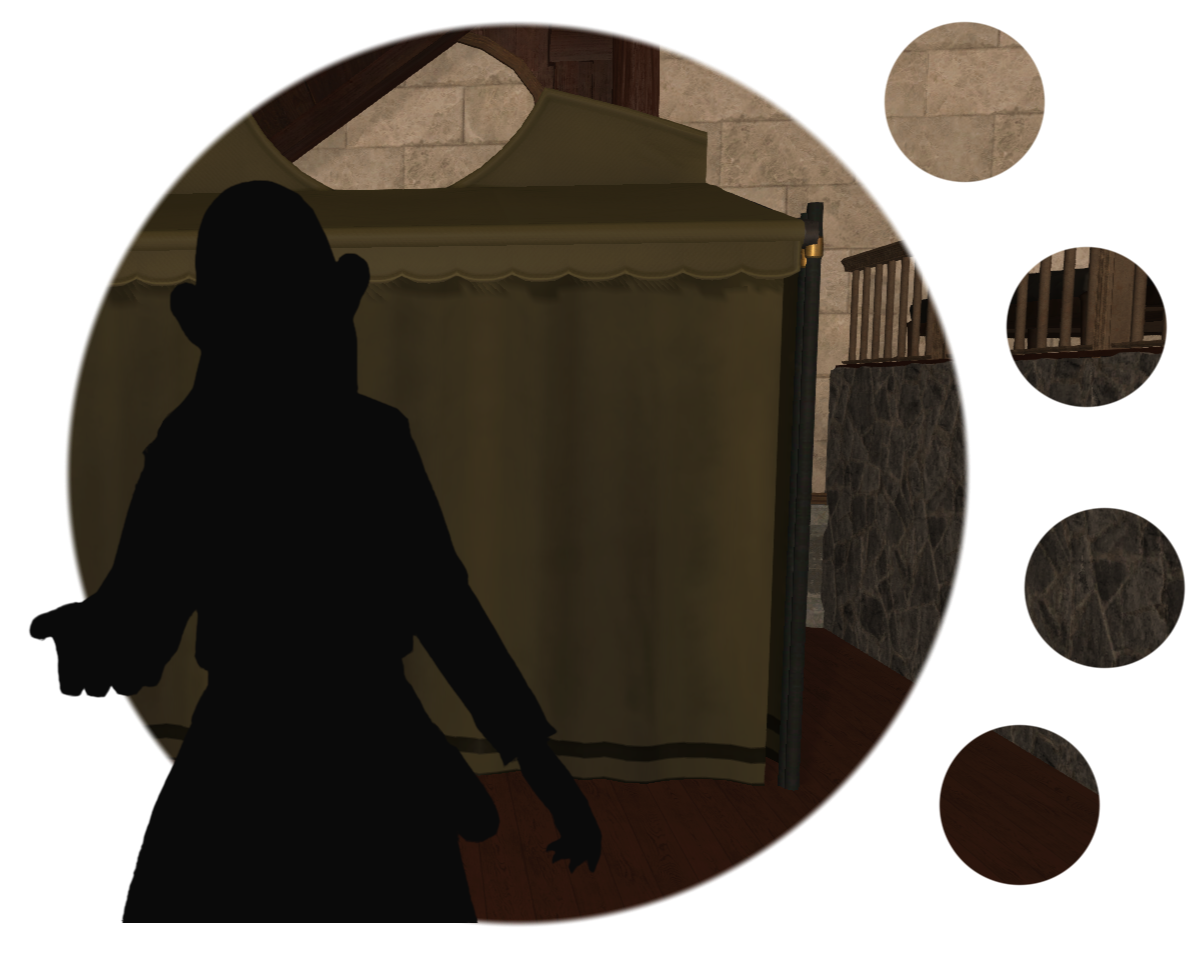Upon entering the venue, guests will be greeted by those prepared to take temporary hold of any weapons while on the premises — unless you're due to fight in the arena, of course! — as well as answer any questions or provide directions around town.The fondness of the interior designer for the color rolanberry will likely be obvious. Those in-the-know would correctly presume this a nod towards the origin of the Mirivon family's moderate wealth, or so the story goes.