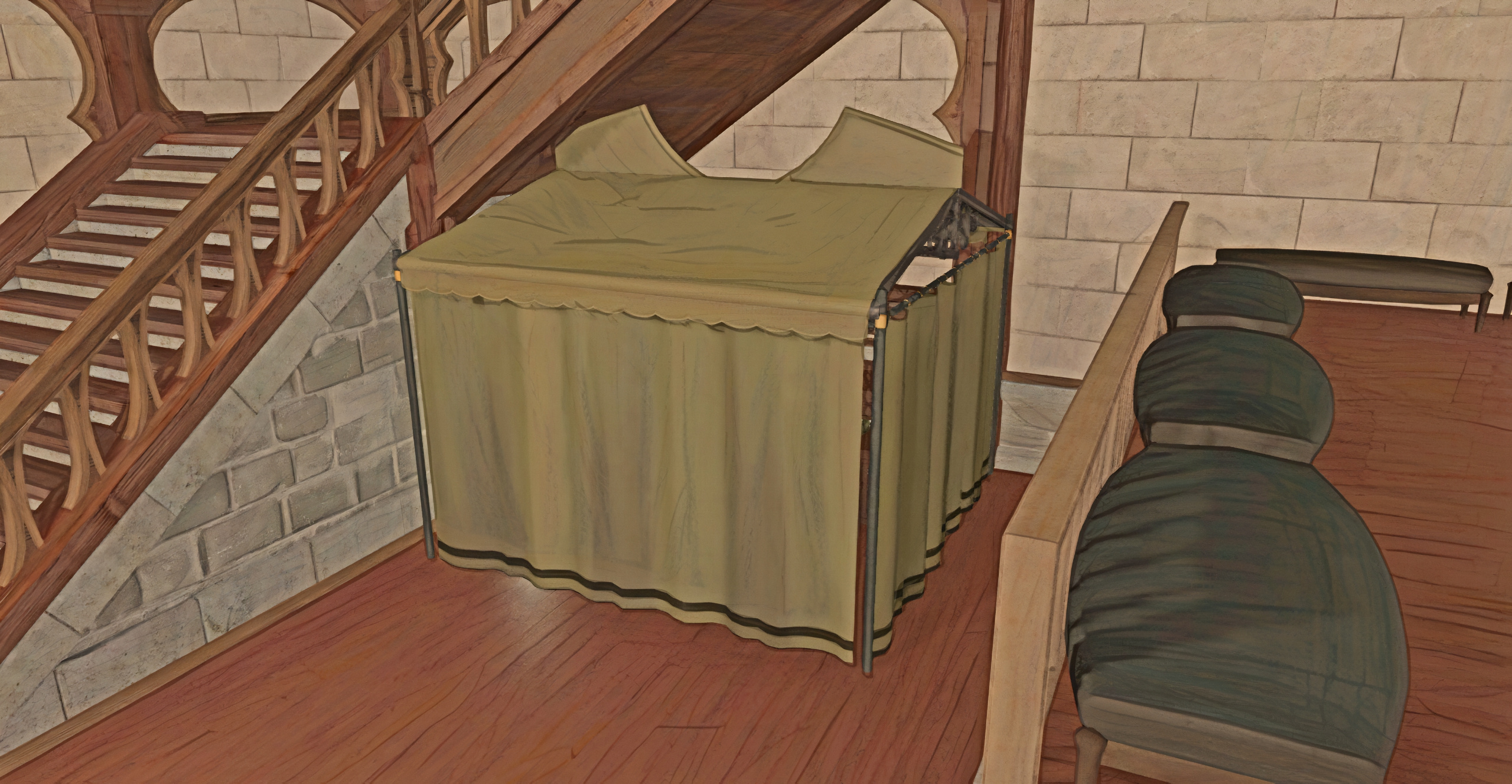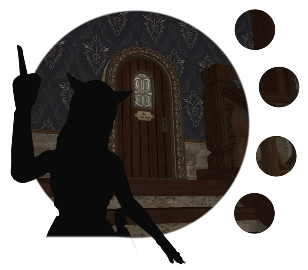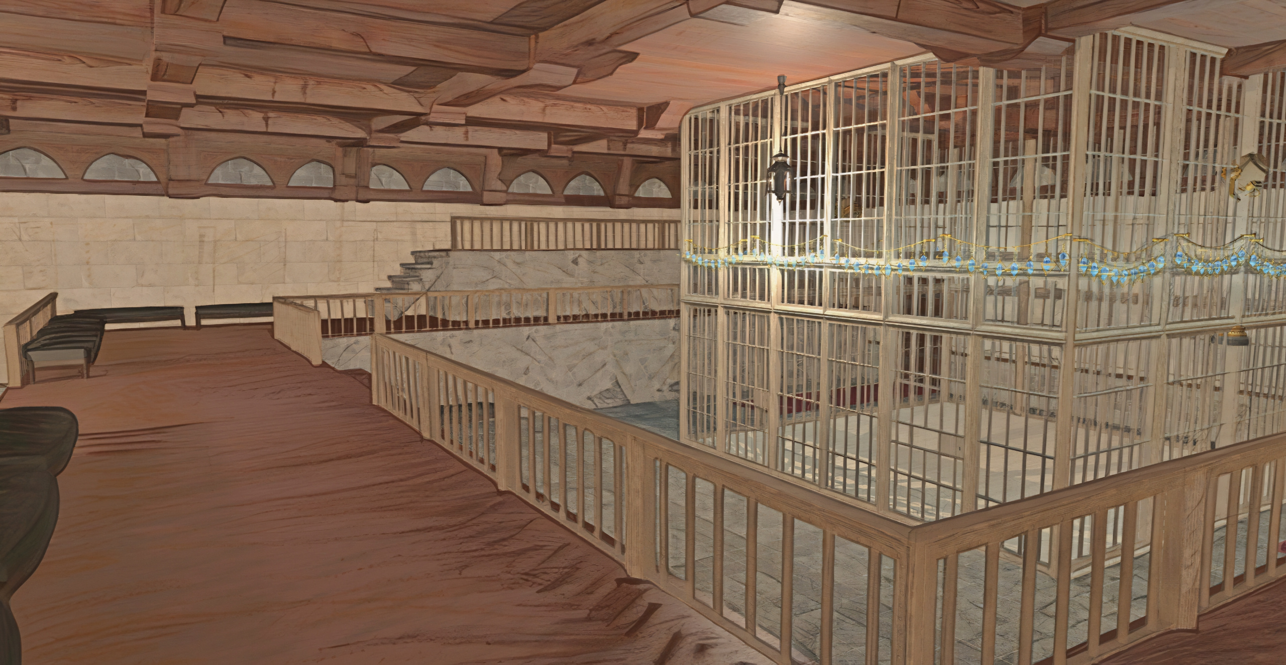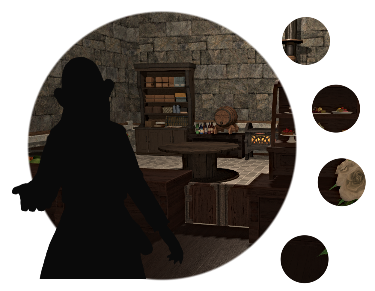 Upon entering the venue, guests will be greeted by those prepared to take temporary hold of any weapons while on the premises — unless you're due to fight in the arena, of course! — as well as answer any questions or provide directions around town.The fondness of the interior designer for the color rolanberry will likely be obvious. Those in-the-know would correctly presume this a nod towards the origin of the Mirivon family's moderate wealth, or so the story goes.