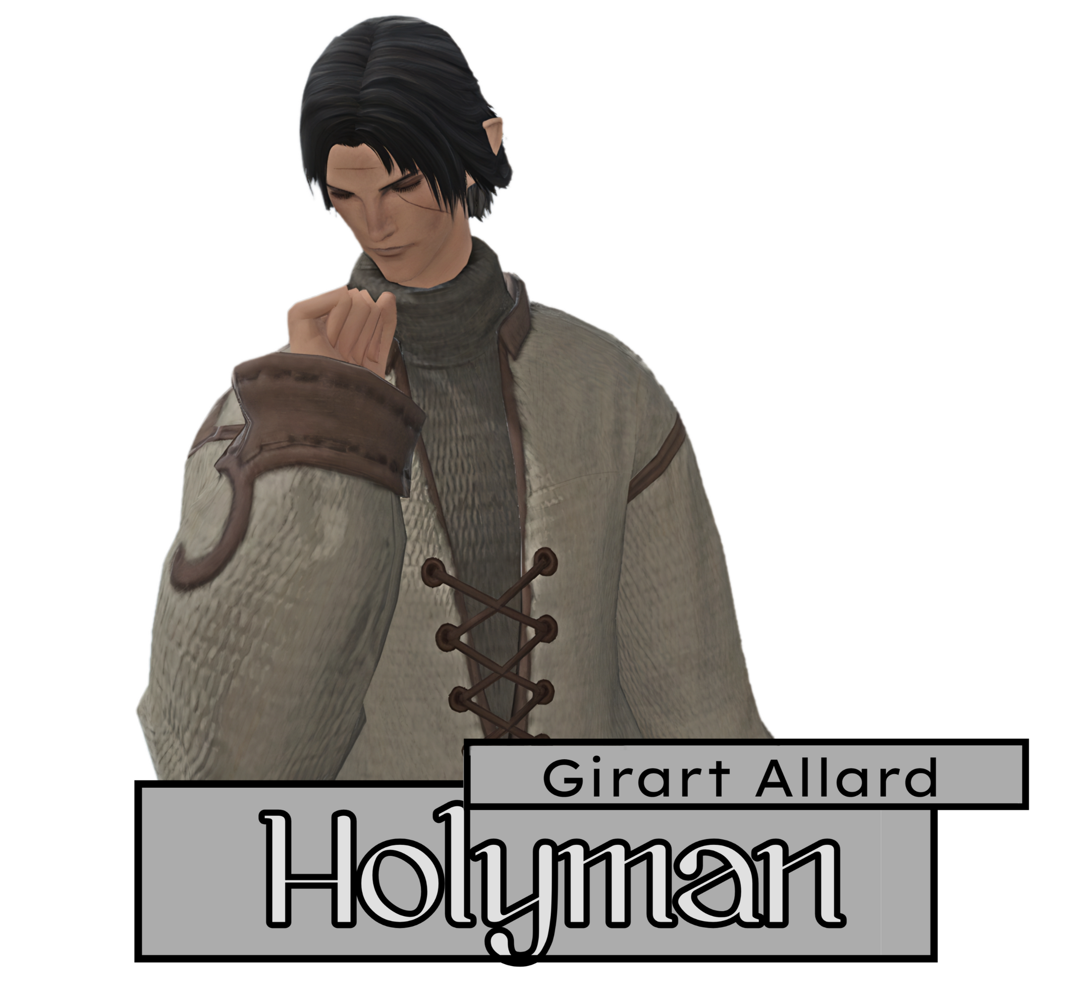 ABOUT GIRART• Girart isn't very keen on the idea of this flood of newcomers to the settlement long-term. He worries what threats they might pose for the locals and their peace, but he is all the same polite, if a little wary, to these strangers when he does encounter them. He shows particular warmth to those who display knowledge of the Twelve, and despite what some might presume, is not only willing to indulge in a good-natured debate about matters of faith but very much enjoys doing so.• Girart has a particular intrigue with any Viera who visit Lettermore. Aforementioned poacher he rescued once upon a time was himself a Viera, and Girart will say he wished he was able to ask the hostile man more about himself to perhaps "guide him to a new path in life," as he "seemed quite unhappy." He hopes to one day encounter him again and be better prepared next time.• Girart is pro-reformist, although in a complicated and layered sense. He believes that moving on is what's best for everyone, and practices what he preaches in this regard. Due to his disfigurements and permanent injuries suffered from a dragon attack in the past, most in the settlement respect such a man with this view even if they don't agree with it.• Girart will accept anyone who wishes to come to the church and discuss anything, and he will not tell a soul what they confided. Characters can of course be doubtful of his resolve, but players should be mindful this Holyman will not say a word about anything told to him in confidentially under any circumstances, for better or worse.