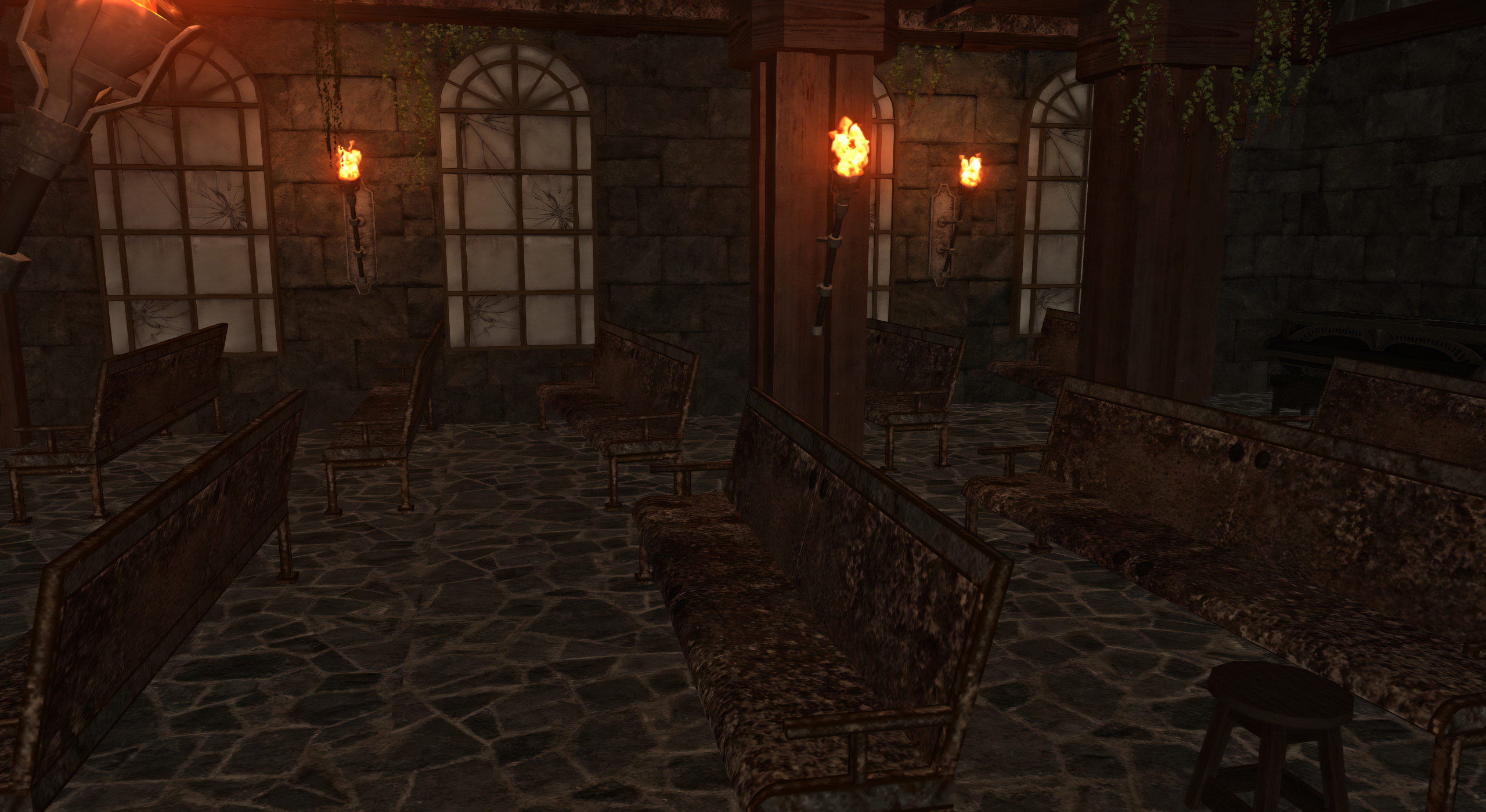 • • • • • • • • • • • • • • •HER FURY BLESSED CHURCHTo the west of the settlement, near the general store and the inn, one would find the church: Her Fury. It's seen better days, years, lifetimes. The benches are rusted, the ceiling is leaking, and the draft is notoriously terrible without constant efforts to combat it. Downstairs one will find the soup kitchen, where anyone can receive a meal, no questions asked. Until recently, it was mostly feeding local youth who want an extra meal before dinnertime and the occasional visitor, as most of Lettermore's homeless population didn't survive the post-Calamity cold.• • • • • • •Potential Plot Hooks• Seeking a meal? Spiritual direction? Literal directions? All are welcome through the doors of Her Fury. "Find here what you want," says the Holyman, "and mayhaps something you didn't know you needed."• The church often serves as a gathering place to discuss matters regarding settlement infrastructure and other topics. It is likewise used as a place where people gather to gossip with each other, and it's not uncommon to see those who don't find the tavern's racket to their liking here doing just that. If someone needs information on something and Margot the innkeeper miraculously didn't know it, Her Fury is always the sensible next stop.• Her Fury is always seeking volunteers to help with cleaning, handing out meals, and other public outreach, no matter their personal beliefs. Those who aid in these endeavors may find themselves good friends with the only person in town even most criminals — allegedly, at least — won't harm. If you need social doors opened, a good standing with Girart is a multi-use key.