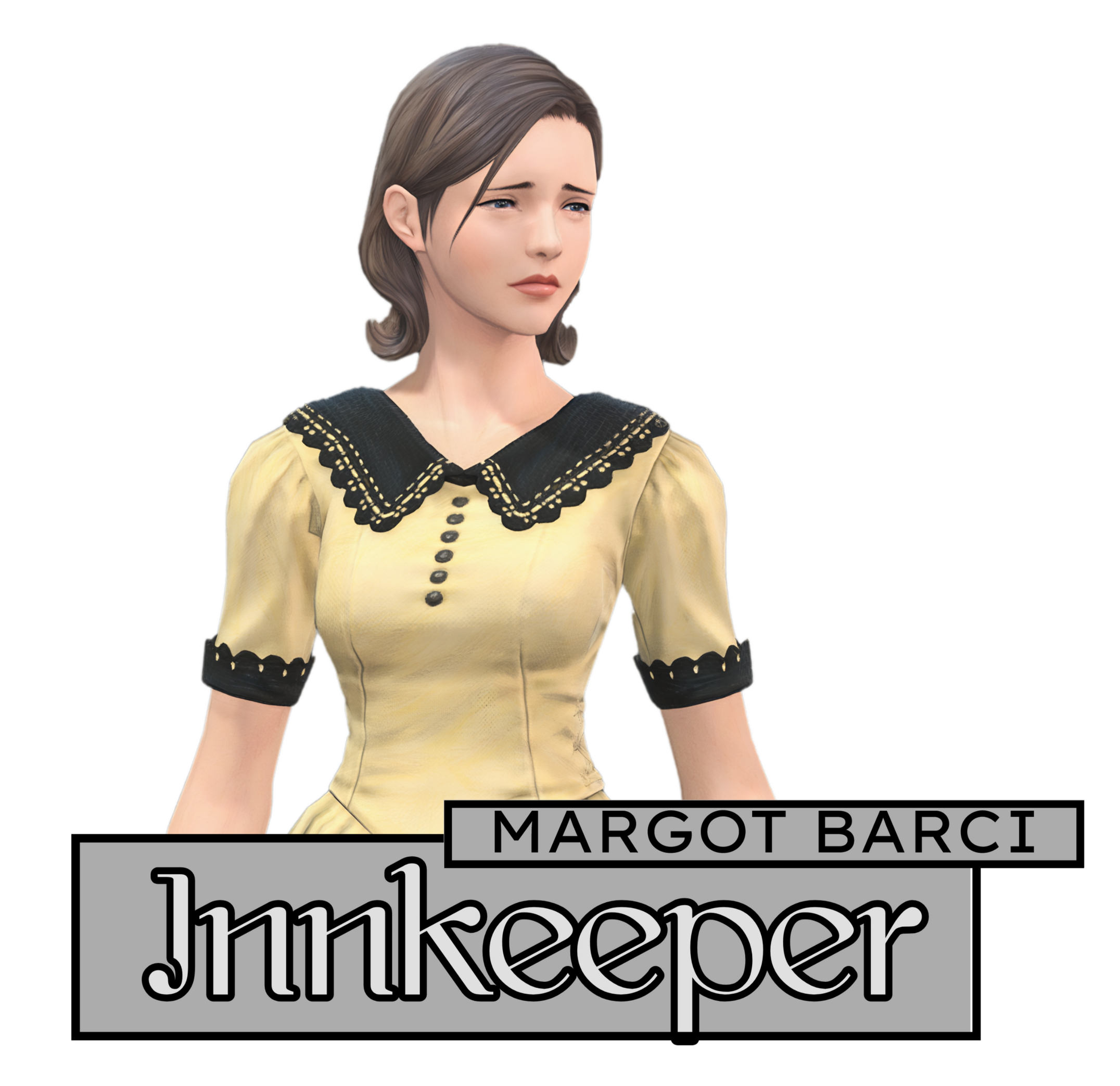 ABOUT MARGOT• Given the amount of business this is generating for her, it's no surprise Margot is in favor of the tournament, despite having no personal interest on 'the unicorn matter.' They're probably extinct by now, right?• Margot is happy to help guide any outsiders to where they need to go, and will give mostly objective information about who they'll find when they get there.Margot seems to have no qualms with the Au Ra visitors. One could surmise she's aware they aren't dragons in any capacity, despite appearances. Either that or she's an amazing actress.• Margot is anti-reformist on the dragon issue. She believes that even if there's peace now, inevitably someone from one side or the other will break it again, and they'll be right back where they started. "The weakest dragon could kill all but the strongest of us. I don't trust that, and I don't know why anyone would. Too many people have never seen for themselves what those things can do."